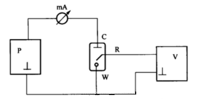 W是主要的電極研究和操作對(duì)象,R是電勢(shì)電極的比較標(biāo)準(zhǔn),而C主要用以通過極化電流,實(shí)現(xiàn)對(duì)電極的極化。右圖中,我們可以看到,三電極體系在電路中時(shí),P代表極化電源,為研究電極提供極化電流。mA和V分別為電流表和電壓表,用以測試電流和電勢(shì)。P,mA,C,W構(gòu)成的左側(cè)回路,稱為極化回路,在極化回路中有極化電流通過,可對(duì)參比電極進(jìn)行測量和控制。V,R,W構(gòu)成了右側(cè)回路,稱為測量控制回路。在此回路中,對(duì)研究電極的電勢(shì)進(jìn)行測量和控制,由于回路中無極化電流流過,僅有極小的測量電流,所以不會(huì)研究電極的極化狀態(tài)和參比電極的穩(wěn)定性造成干擾[3]。